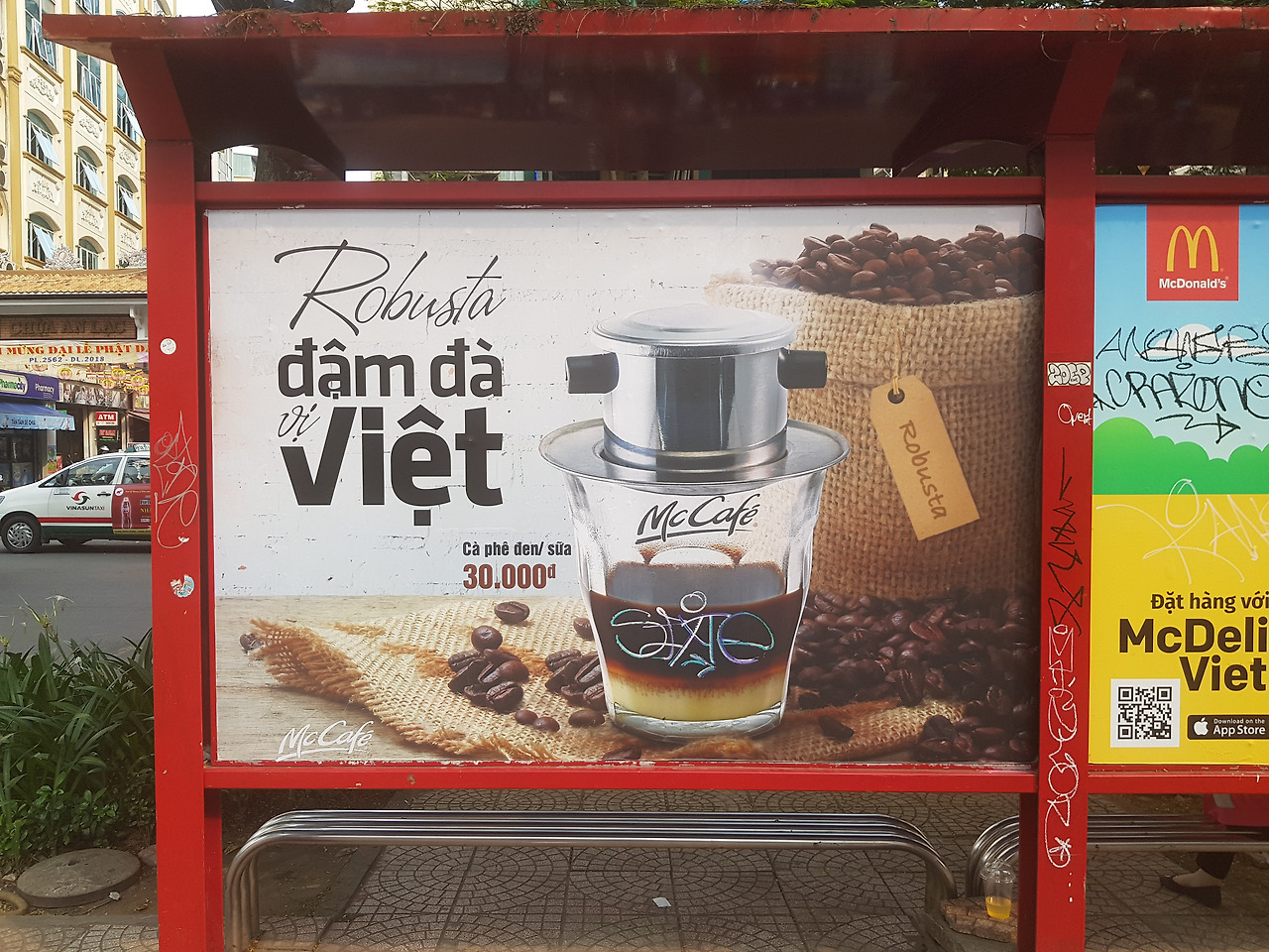도심 한가운데 공원도 지나고, 아기자기한 팬시 용품점도 들어가 보고 예쁜 그라피티도 구경하면서 거리 구경을 하니 커피가 생각이 난다. 맥도널드에서 카페 스어다를 판다는 광고판을 보며 지나다 맥도널드 있으면 들어가야지 했는데 적절한 타이밍에 등장을 해줘서 내겐 베트남 커피=카페 스어다를 한 잔 주문해서 엄마랑 나눠 마셨다. 맥도널드의 현지 전략 칭찬해, 맥 카페 표 쓰어다 맛도 좋고 에어컨도 빵빵하니까 참 좋구나.