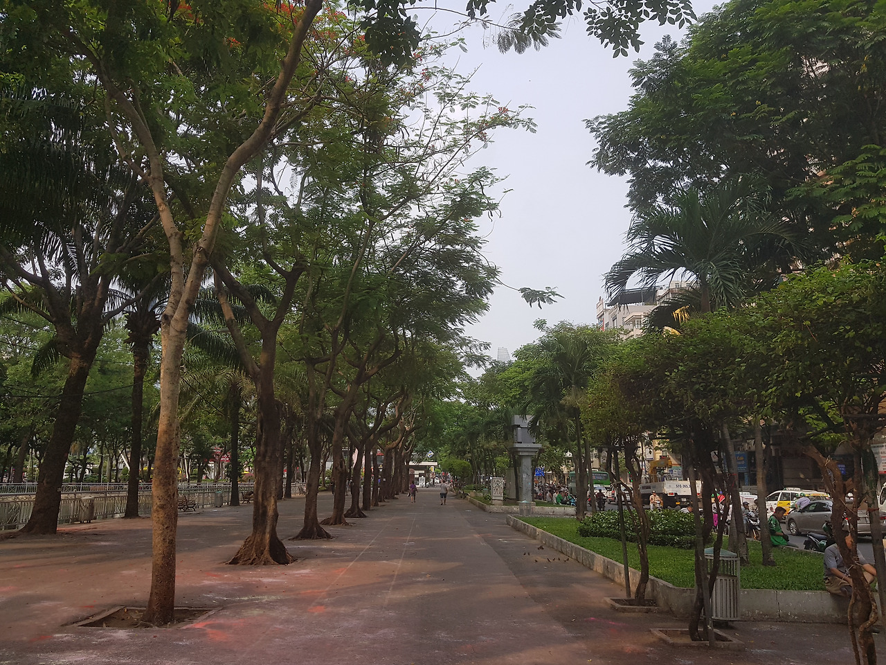 10분 정도 거리에 통일궁이 있었다. 순서로는 통일궁을 보고 전쟁기념관을 보는 게 맞다. 전쟁 기념관의 임팩트가 너무 커서 통일궁에 있는 동안 본 장면들은 그냥 붕붕 떠 다닌다. 당시의 긴박함을 느낄 수 있었지만, 그게 다였다. 입구에 하이랜드 커피에서 마음을 좀 진정시키기로 했다. 디저트 사면 커피를 싸게 마신다고 직원이 영업을 한다. 잠시 고민했다. 카페 스어다 한 잔과 리치가 들어가는 음료로 이층에 앉아 한가로운 통일 궁 앞의 풍경을 보고 옆 옆 자리에서 면접이 한 창이라 잠시 엿듣기도 했다. 마음이 진정되어 책거리로 나선다. 작은 골목 안에 서점들과 북버스 그리고 중고 서적들이 판매되고 있었다. 호찌민의 또 다른 풍경이었다. 테마들이 귀여웠다. 문득 호찌민의 강은 어떨지가 궁금해져 멀지 않은 선착장으로 가보기로 했다. 강가의 작은 공원에는 각자의 방법으로 휴식 중이었다. 오늘 날씨가 흐린 편이라, 하늘도 강도 예쁘지 않았고 강 저편으로 공사 중인 건물들만 또렷하게 볼 수 있었다. 호찌민도 역동적으로 변화하는 중인가 싶었다.