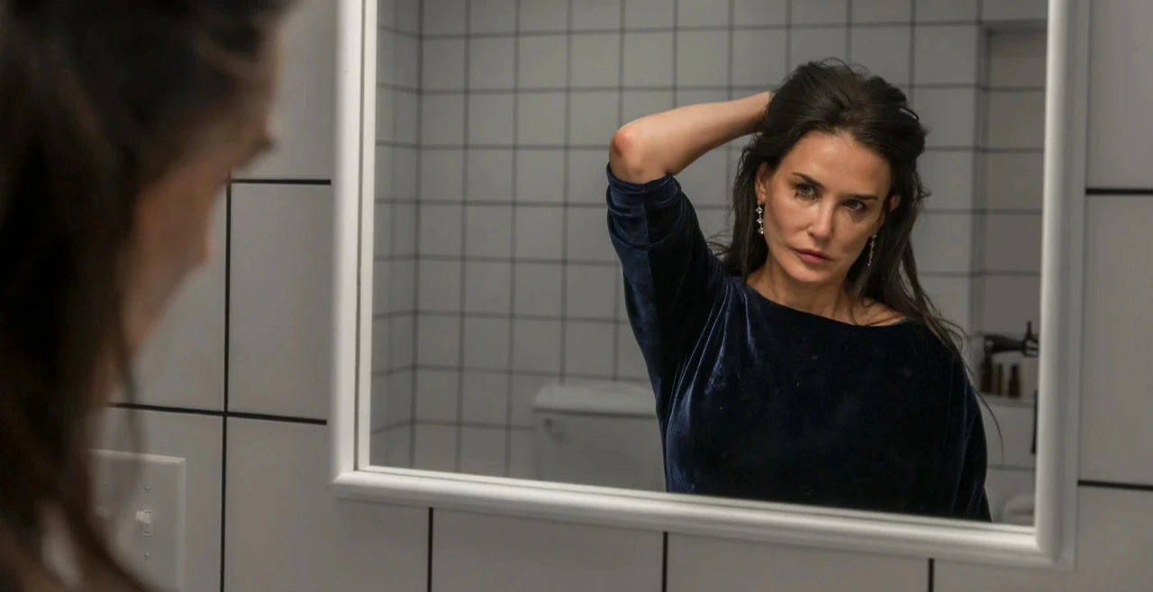 과거의 영광으로 점철된 집은 족쇄와 다름없다. 그녀의 실직에도 방송가는 내내 분주했다. 공백이 생기기만을 기다렸다는 듯이 밀려드는 젊은 쇼맨들의 지원서에 할리우드의 핫라인은 밤낮없이 가동되는 중이었다. 수십 년의 커리어보다 젊음과 아름다움이 갖는 경쟁력이 갑절은 우수하다는 사실이 재차 확인되는 순간, 허망과 비탄이 피어오르고 그녀는 끝내 서브스턴스에 손을 대고 만다.