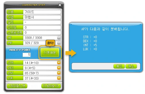 STR(힘): 2 / DEX(민첩성): 3 / INT(지력): 5 / LUK(운): 0