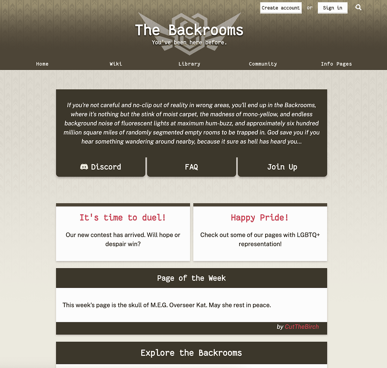 촘촘하게 설계된 세계관이 궁금하다면 위키 에서 확인할 수 있다. 앞서 말한 끝없는 복도는 고작 레벨 0이다. 레벨이 거듭될수록 점차 환경이 열악해지고, 때로는 비교적 안전한 공간이 등장해 잠시 숨을 돌리게 해준다. 동화 속 마을 같은 방(레벨94 Motion)이 나오는가 하면 물로 가득 찬 음산한 방(레벨37 Sublimity)도 있다.