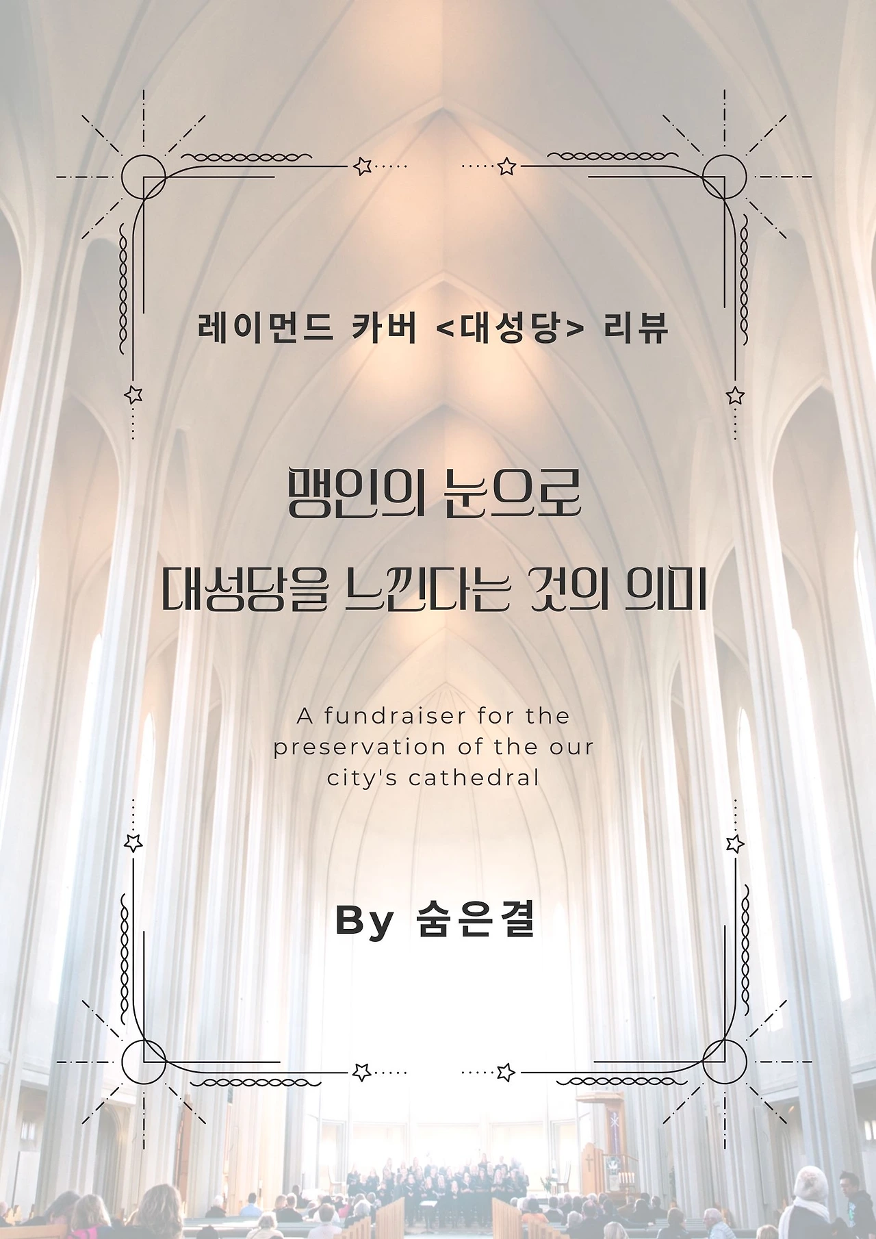카버의 <대성당>은 이 작품에 수록된, 앞선 작품들인 <깃털들>, <셰프의 집>, <보존>과 같은 작품들에 비해 매우 유머러스하고 독자에게 많은 것을 보여주고 있다고 느꼈다. 게다가 말투도 달랐다. 전자의 작품들은 꽤 건조해서 말을 절제하는 느낌이었으나 이 <대성당>만큼은 독자 친화적이라고 해야 하나. 무엇보다 아주 유머러스하다. 웃음을 주고 있다.