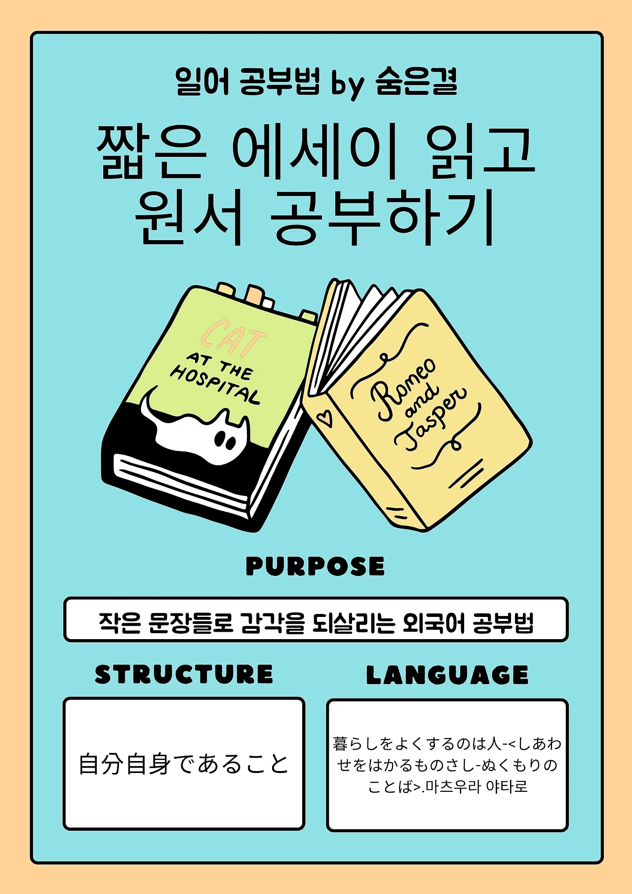 생활에서 이미 일드 보기를 실천하고 있다면, 한 발 더 앞으로 나아가는 일어 공부법으로 원서로 된 짧은 에세이 읽기를 추천한다. 해 보면 즐거움을 알게 될 것이 분명하다.