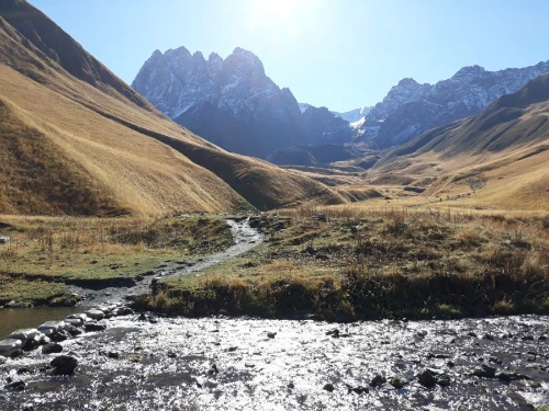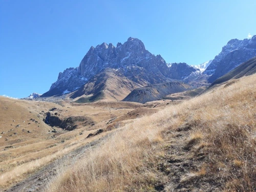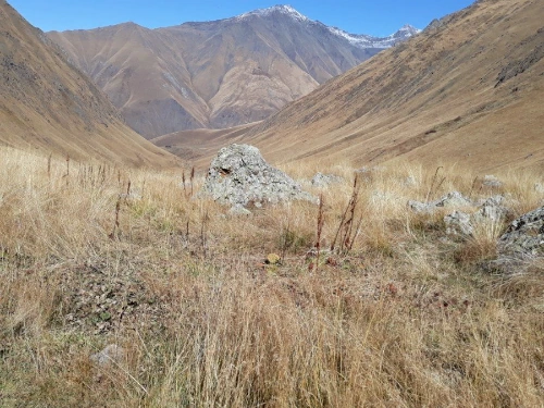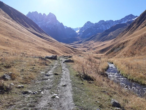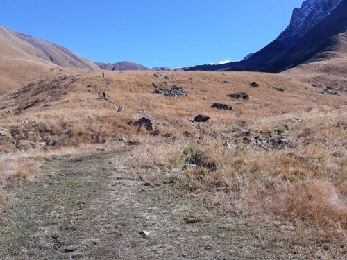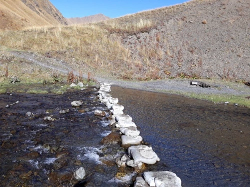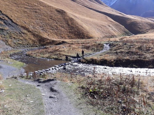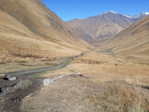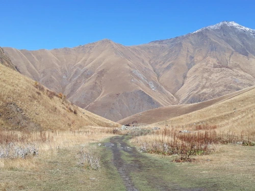 스테판츠만다를 떠난 차가 30여 분쯤 달려 멈추어 선 곳에 내려보니 손가락으로 몇 집인지 세어도 될 것 같은 손바닥만 한 마을이 있는 주타이다. 한여름 성수기에 오는 손님으로 한 철 장사를 하는지 그나마 몇 개 되지도 않는 가게들은 모두 문을 닫아 마을 입구는 휑하기마저 하다. 물 한 병 살 가게도 없고, 그저 끝없이 펼쳐진 산들만 끝을 모르게 이어져 있다.