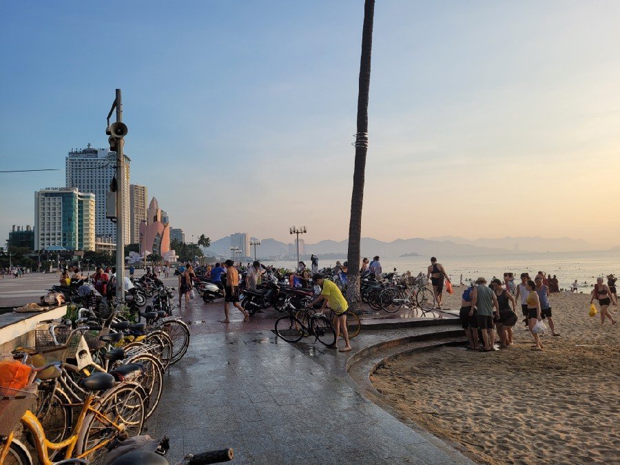 조깅이나 워킹을 위해 학교 운동장이나 공원을 찾는 것이 한국 아침의 보편적인 일상이라면, 나트랑에서는 해도 뜨지 않은 바다에서 하는 수영이 그들의 하루를 시작하는 알람 같은 것이었다. 멀리 있는 사람들은 오토바이나 자전거를 타고 와서 수영을 하고 젖은 옷 그대로 돌아가기도 했다. 바닷가 곳곳에는 짠 물에 젖은 몸을 씻을 수 있는 수도 시설이 군데군데 있고, 곳곳에서 수영복을 갈아입고 몸을 닦는 모습은 지극히 자연스러워 보였다.