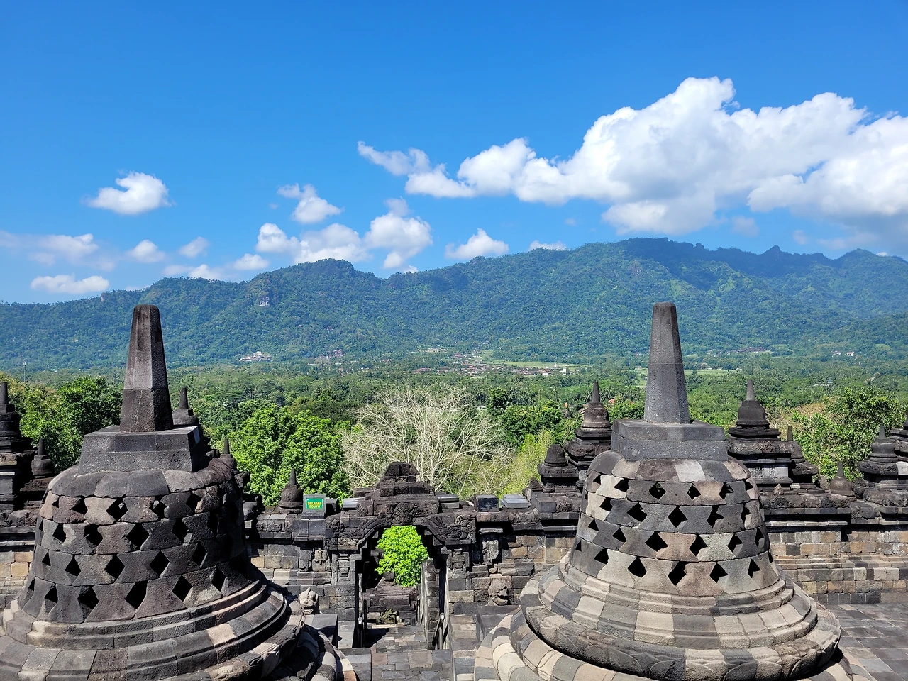 인도네시아 인구의 90%가 무슬림 교도인데 어떻게 이렇게 큰 불교사원이 만들어졌는지 궁금했다. 보로부두르사원은 840년경에 만들어졌으나 화산 폭발로 인해 천 년 가까이 재에 묻혀 있다가 영국인에 의해 발견되어 지금의 모습으로 유네스코에 등재되어 있다.