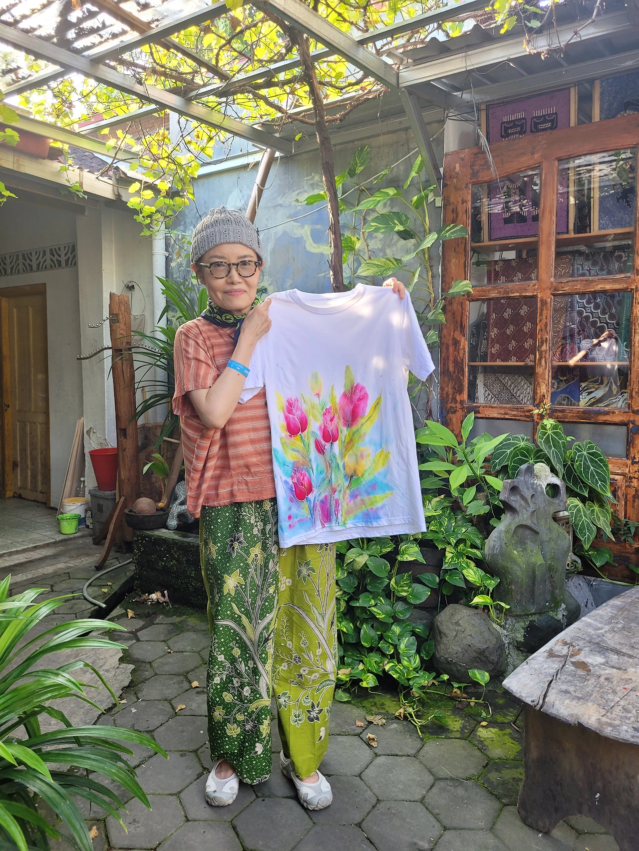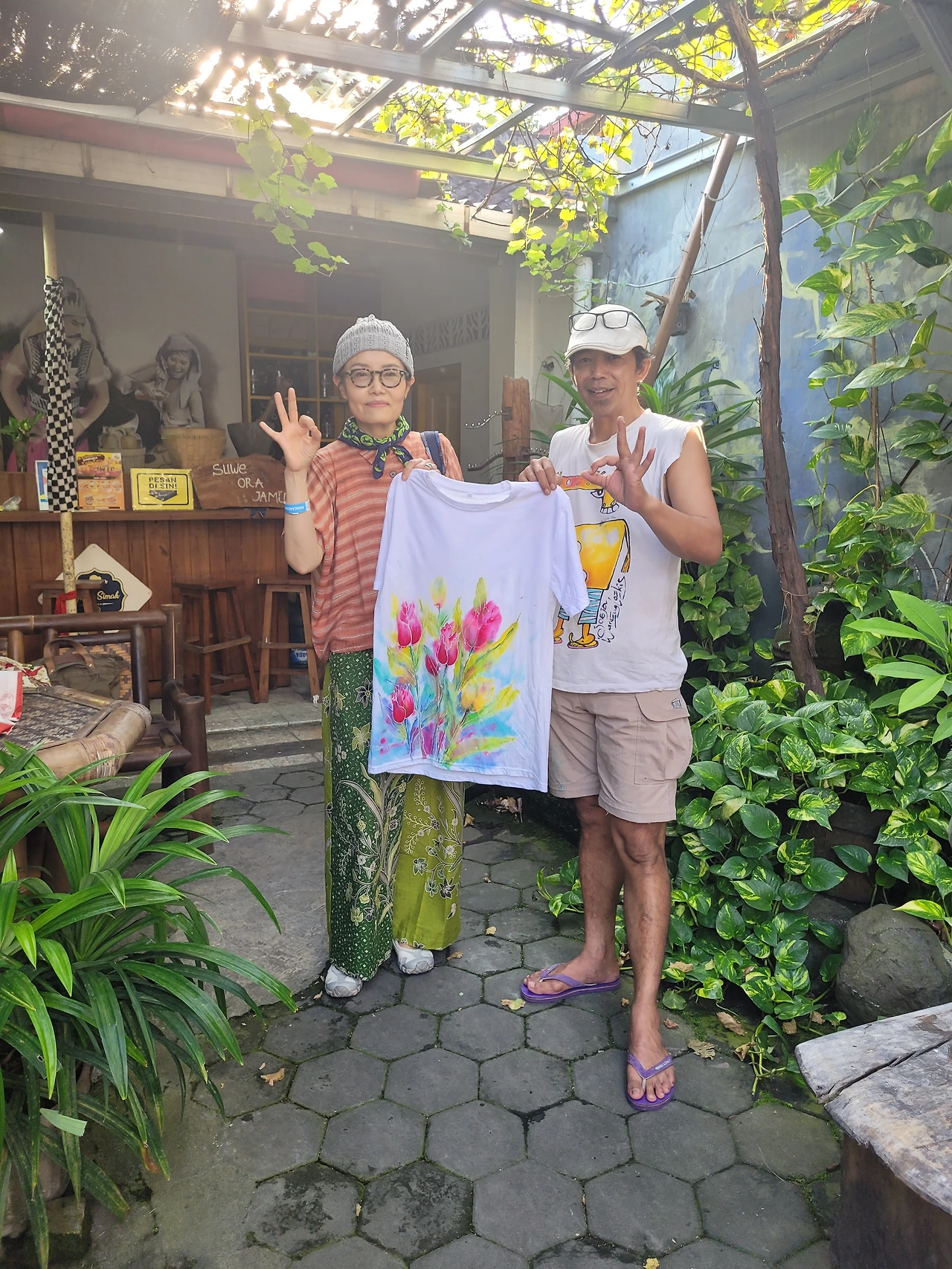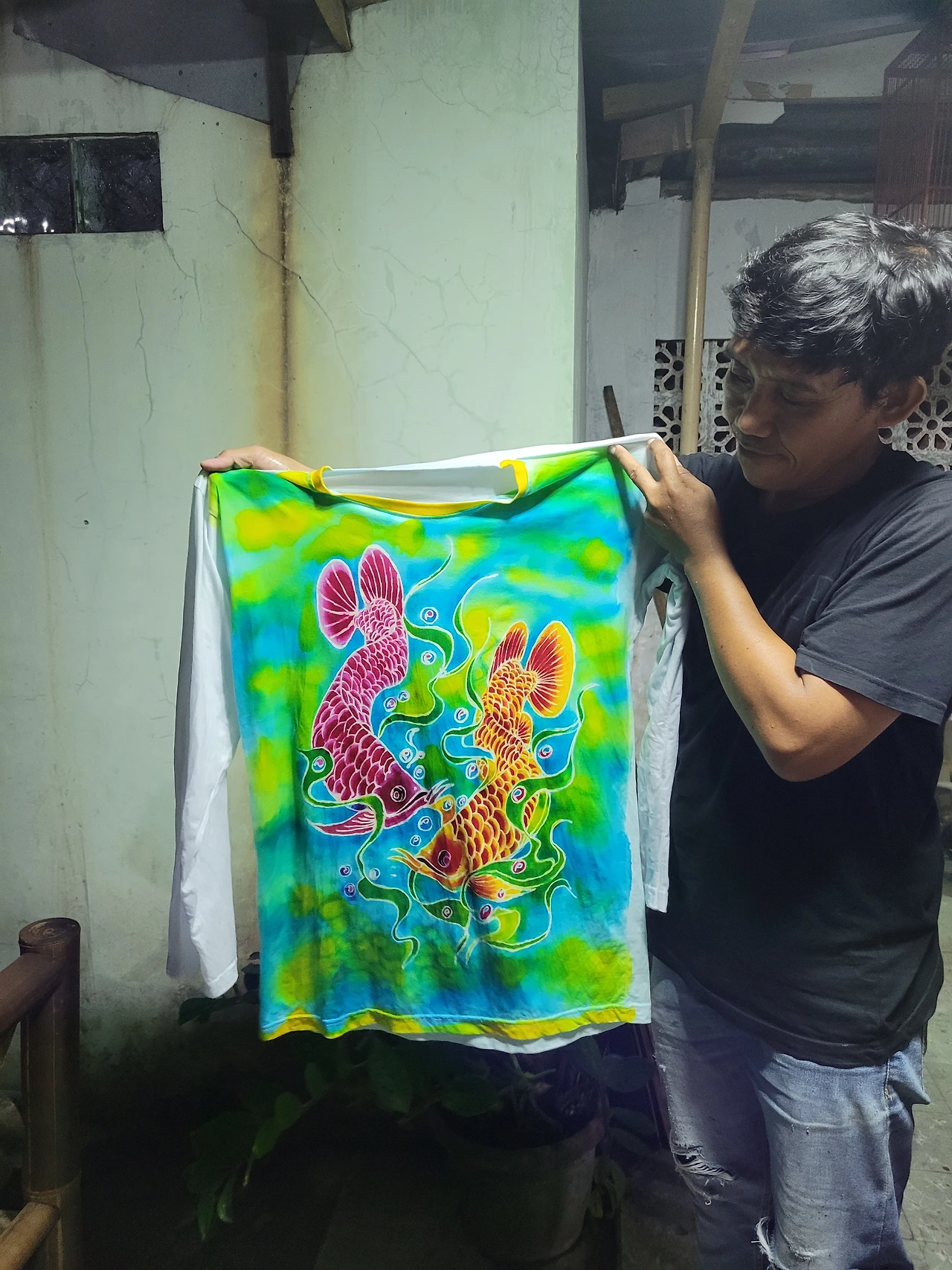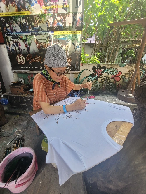 그가 나를 마지막으로 데려간 곳은 따만사리 안에 늘어서 있는 가옥들 초입에 있는 바틱 가게였다. 그곳에서는 바틱을 실제 그려볼 수 있다. 250,000루피아를 내면 흰색 티셔츠에 본인이 원하는 문양을 그린 후 가져갈 수 있다.