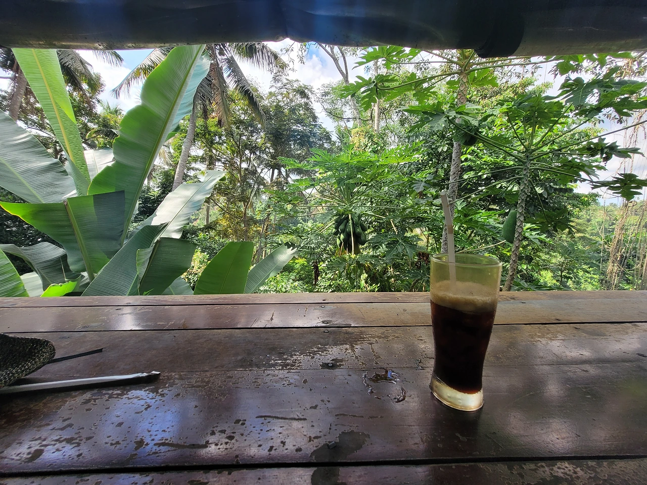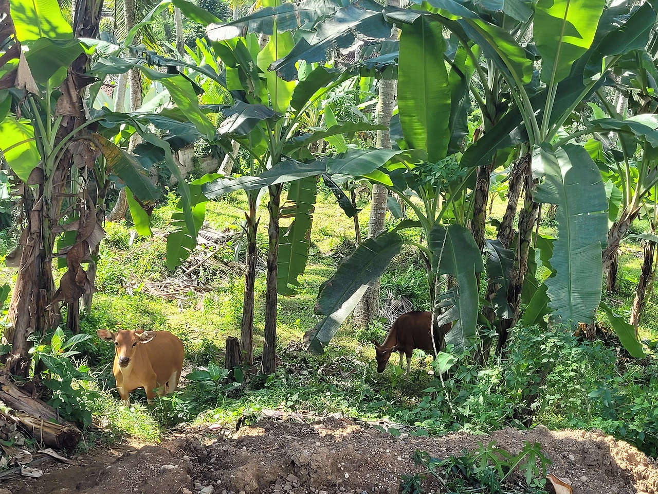 앉아 있는 테이블 바로 앞까지 바나나 잎이 무성하다. 접시로 쓸 요량인지 주인아저씨가 낫을 들고 와서 바나나 잎사귀 몇 장을 뜯더니 즉석에서 다듬어서 가지고 간다.