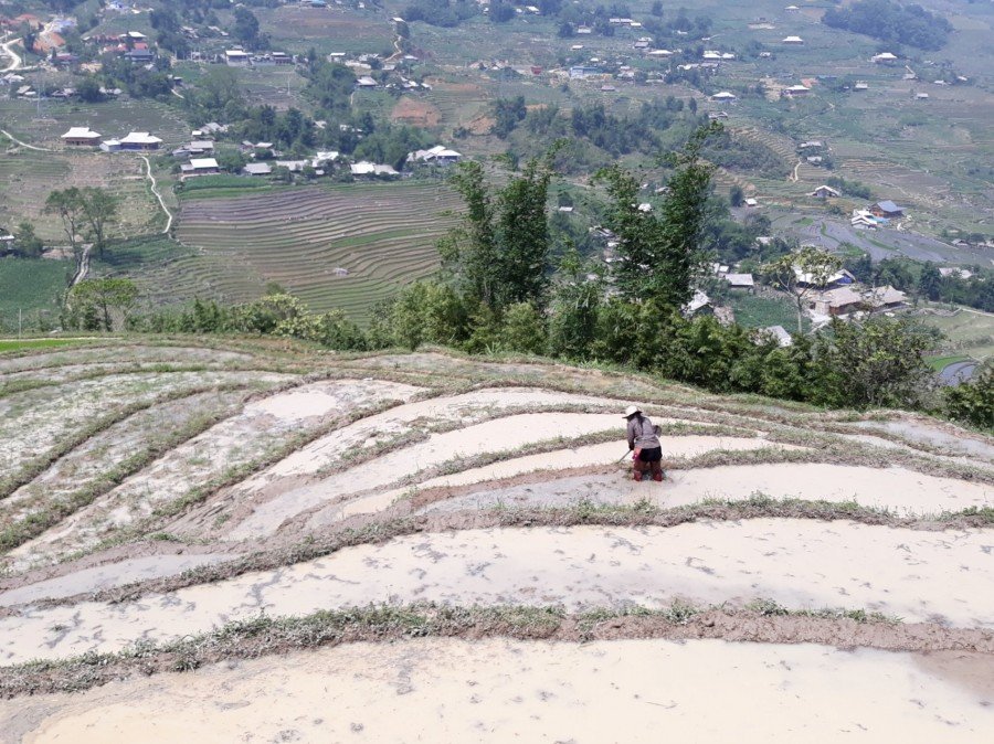 드넓은 초록을 기대했는데 사파는 이제 겨우 모내기 준비를 하고 있어서 아직은 벌거벗은 논이 더 많다. 모가 어느 정도 자란 7, 8월이나 황금 들판인 가을이 절정이라고 한다.