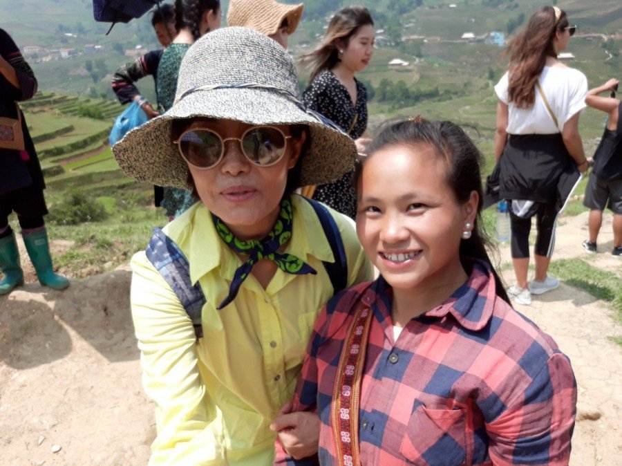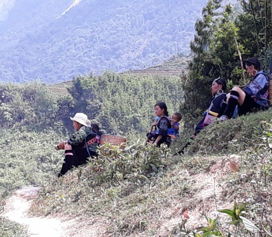 출발 지점부터 가이드와 비슷한 옷을 입고 우리와 함께 걷는 아낙들이 있다. 우리를 따라오는 건지, 우연히 우리와 길이 겹친 건지 초반에는 사파의 자연경관에 취해 그들이 눈에 들어오지 않았다. 그런데 우리가 쉬면 그들도 쉬고, 우리가 출발하면 그들도 다시 걷기 시작한다.