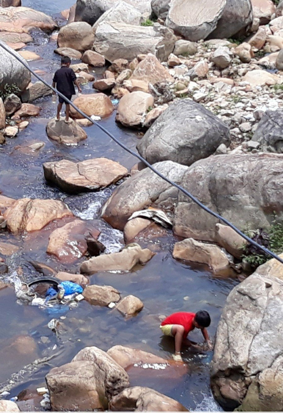 굽이굽이 걷다 보니 개울도 나온다. 물이 더럽고 깨끗하고는 그다지 중요하지 않은 지 꼬마 녀석들이 얕은 개울물에서 놀고 있다. 더운 날에 둘도 없는 놀이터다. 저기서 무엇을 찾는지 궁금해서 한참 동안 다리 위에서 내려다보았는데 잘 찾아지지 않는지 내가 자리를 뜰 때까지 아이는 등을 한 번도 펴지 않는다.