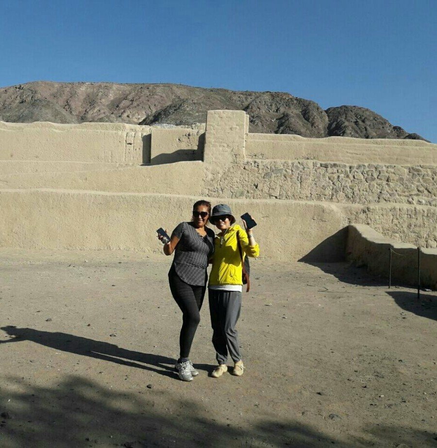 그녀는 나스카의 강한 햇빛 때문에 검게 그을린 피부가 싫다고 하지만 내가 보기에는 그래서 더매력이 있다. 성격이 활달해서 사진을 찍을 때마다 이렇게 찍자며 포즈까지 제안한다. 재미있는 옛날이야기 같은 역사를 듣다 보니 뙤약볕도 더운 줄 모르고 신나게 따라다녔다.