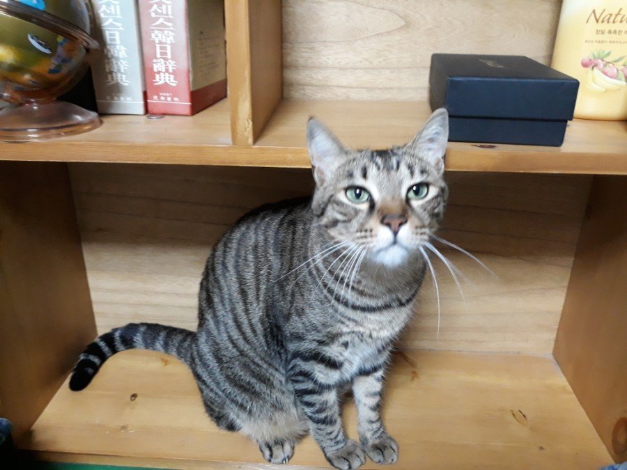 책을 비워낸 책장에 고양이가 낼름 들어와 앉는다. 청소하느라 이리저리 다니는 나를 지치지도 않고 따라다니더니 텅 빈자리에 앉았으니 녀석이 더 또렷이 보인다.