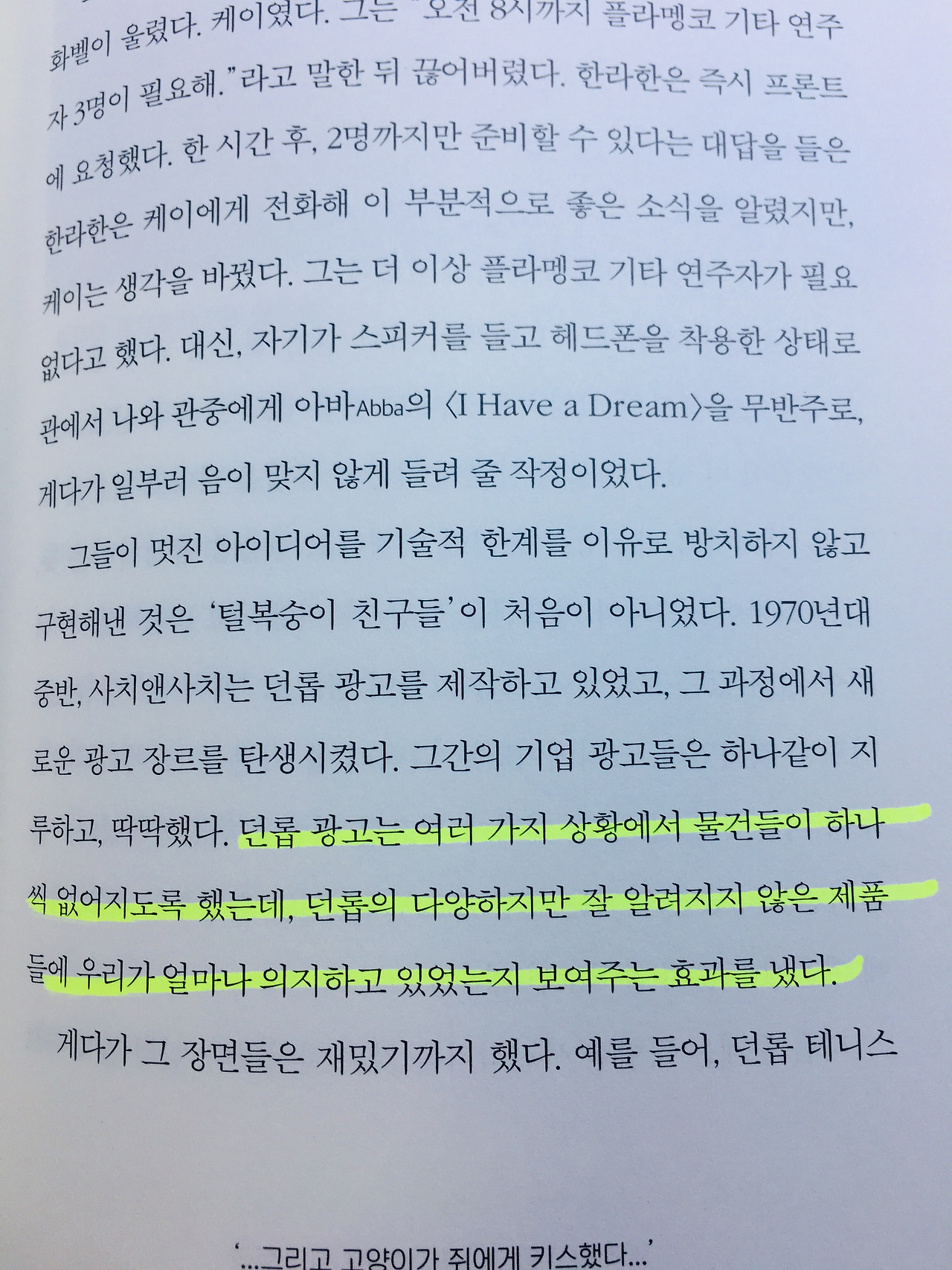 <제거 : 상실의 가치>던롭 광고는 여러가지 상황에서 물건들이 하나씩 없어지도록 했는데, 던롭의 다양하지만 잘 알려지지 않은 제품들에 우리가 얼마나 의지하고 있었는지 보여주는 효과를 냈다.세계 최고 광고회사 사치앤사치 스토리 | 리처드 마이어스, 사이먼 구드, 닉 다크 지음