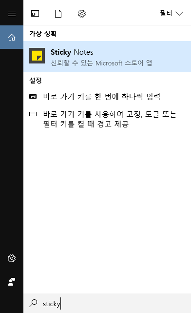 좌측하단 검색 탭에서[ sticky ] 검색 사용