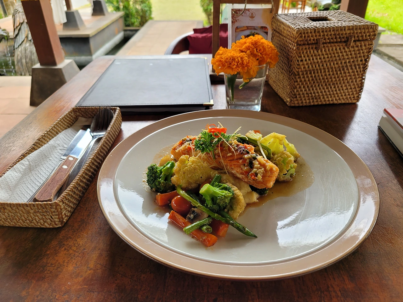 하지만 여행에선 이 둘은 제껴둔다. 난 잠시라도 이곳에선 주부도 워킹맘도 아니다. 숙소를 나가 끝없이 펼쳐진 정글과 논을 누비며 아침산책을 한다. 책을 읽고 글을 조금 끄적이고 요가를 한다. 느긋이 동네 식당에서 점심을 먹는다. 오늘은 무얼 먹어볼까 메뉴판을 열심히 마주하는 일도 하루의 즐거움이다. 음식은 저렴하고 맛있다. 가급적이면 로컬 음식을 먹는다. 여유롭게 점심을 먹은 후 동네를 걷는다. 햇살이 따가워지지만 온통 누워있는 개들과 사람들을 보는 재미를 하루라도 놓칠 수 없다.