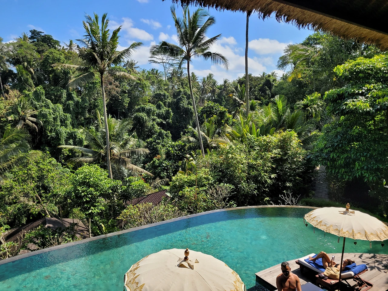 숙소에서 무료로 제공하는 마사지를 받았다. 한 시간 동안 정성스러운 손길에 몸 구석구석이 황홀하게 릴렉스된다. 너무 감사해서 팁을 후하게 드리고자 했지만 현금이 부족해 성의만 표시했다. 오후엔 주로 넷플릭스를 보고 독서를 한다. 한낮이 지나고 서서히 오후가 익어가면 윗층에 있는 수영장으로 간다. 파란하늘, 구름, 그 아래로 일렁이는 푸릇푸릇한 논과 정글의 바다를 굽어보며 한바탕 헤엄친다. 오십견과 목디스크로 오랫동안 수영을 하지 못했다. 여기서 매일 호사를 누린다.