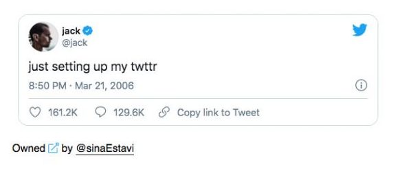 "지금 막 내 트위터 계정을 설정했다"라는 의미로 첫 트윗을 날렸던 트위터의 공동창업자 잭 도시의 "태초의 트윗 NFT"가 약 33억원에 낙찰되었다.