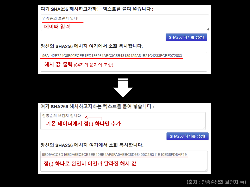 ② 점(.) 하나만 추가 시 출력된 해시 값