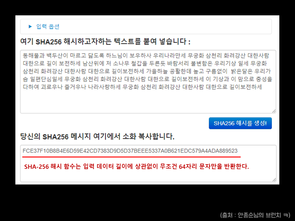 - 출력 : 9B09ACC8D16B2A6EC8CE3EE45BB4AF5FA5AEBC8D36455C2B311E10E36FD8AF19