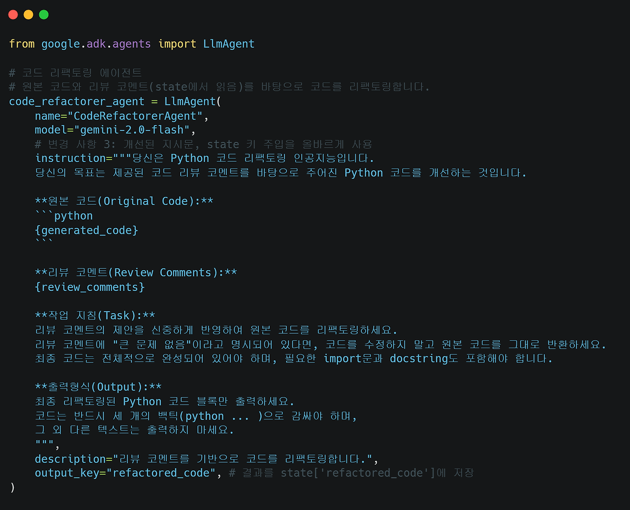 다음으로 마지막 하위 에이전트인 코드 리펙터 에이전트를 구현하겠습니다.