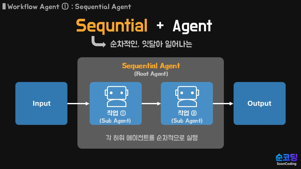 첫번째로 배울 워크플로우 에이전트는 SequentialAgent입니다.