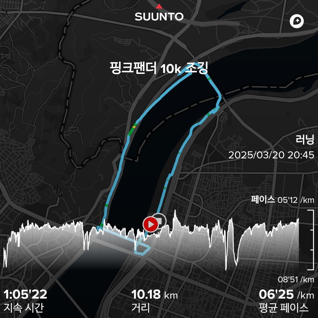 3월 16일, 서울마라톤 10km는 2025년 핑크팬더의 첫 단추를 꿰매는 대회였다. 첫 단추는 잘 꿰맨 것 같다. 결과도 만족스러웠다. 서울마라톤은 핑크팬더가 다시 뛸 수 있다는 자신감을 회복한 대회였다.