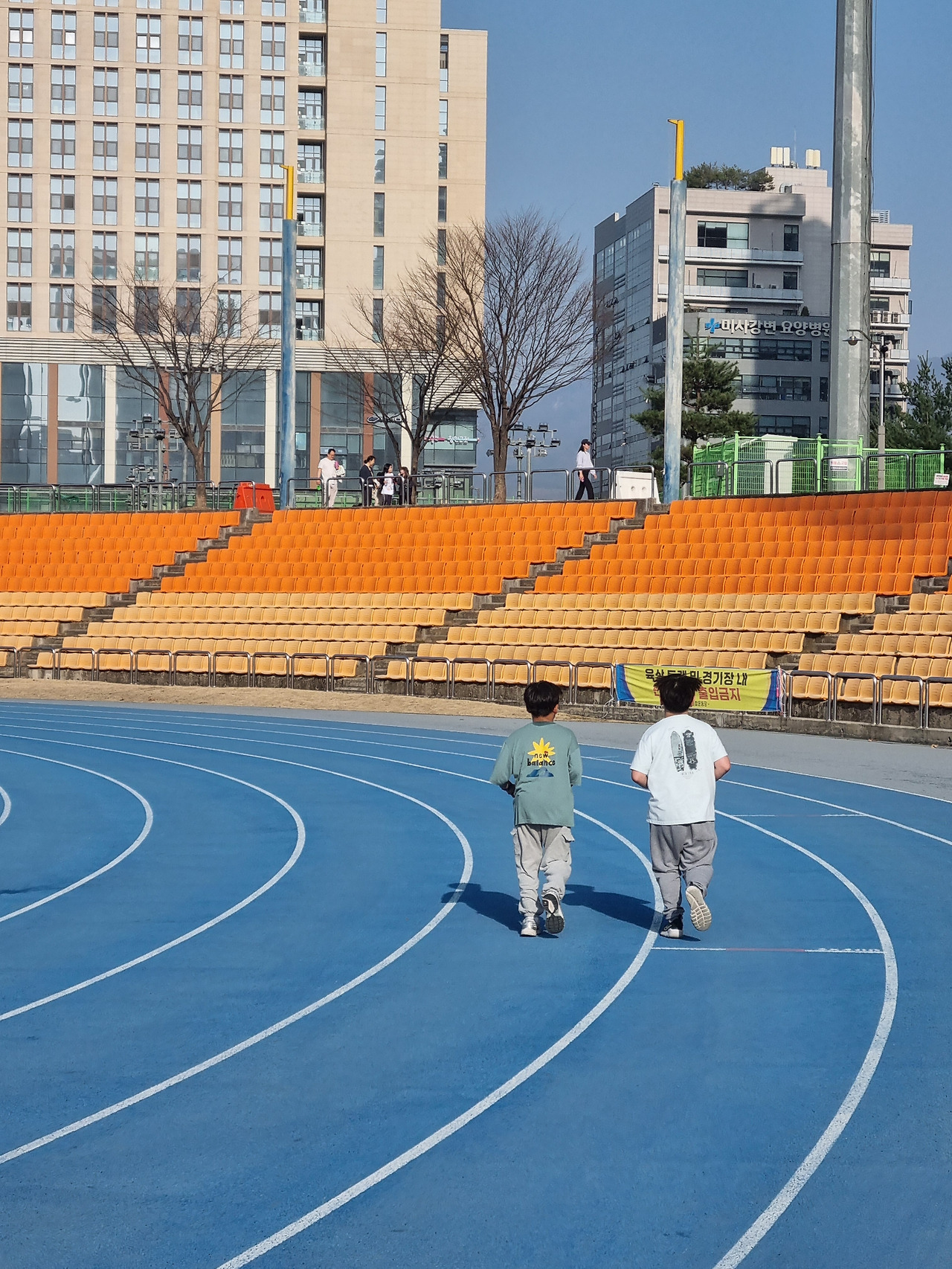 오랜만에 찾은 하종운은 맑은 파란 하늘과 파란 트랙이 마치 반영처럼 보이는 듯했다. 그늘은 시원했고 볕아래는 따뜻했다. 점심시간쯤에 찾았는데도 축구하는 사람들과 트랙을 뛰는 러너들로 핫했다.