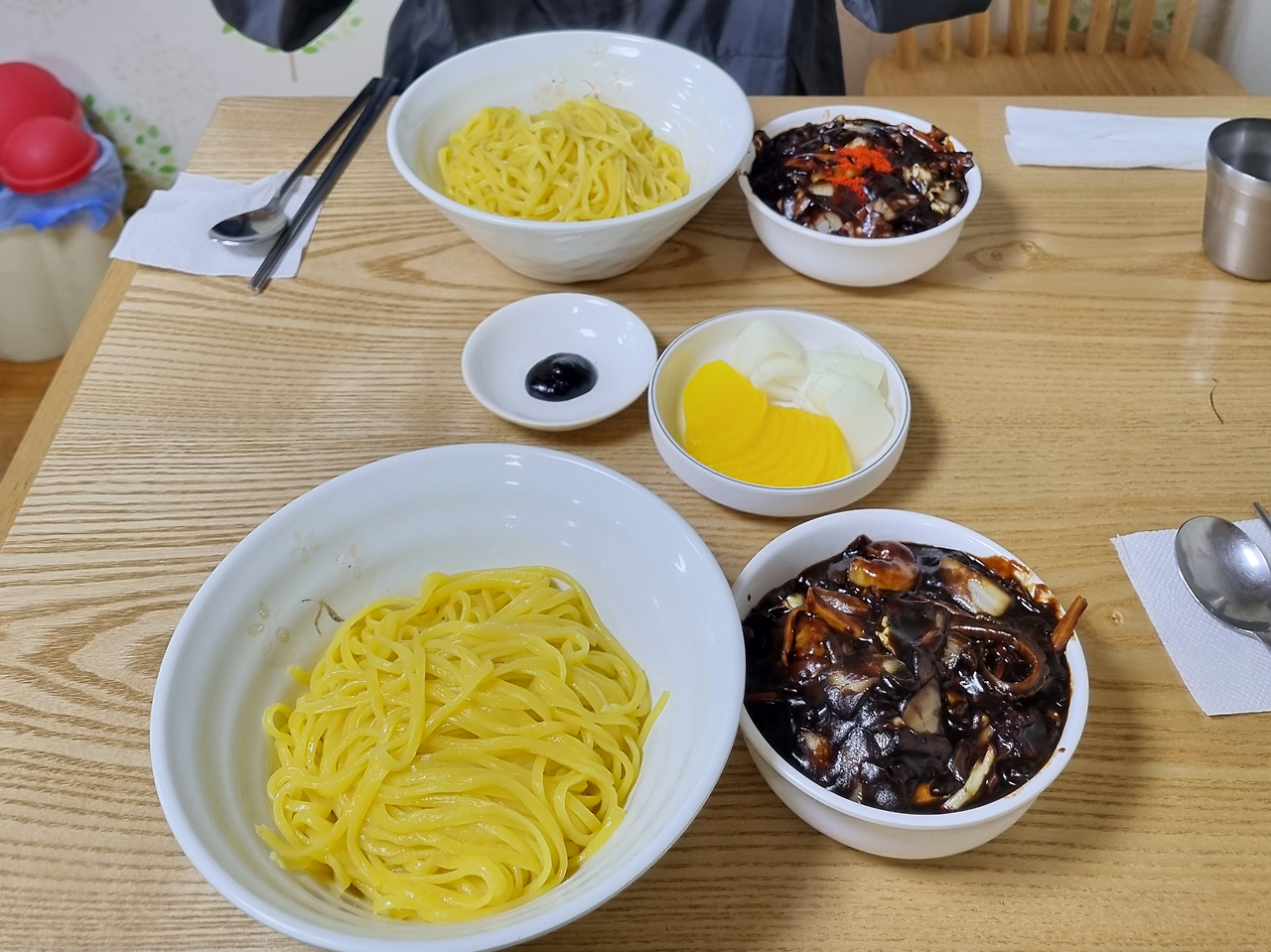 훈련을 마쳤으니 이제 든든히 배를 채워야 한다. 우리는 중국집으로 향했다. 카보로딩**** 시작이다. 소식좌 핑크팬더 간짜장을 싹싹 먹는다. 배고픔 탓인지 내일 대회를 위해 무리하게 먹는 것인지..ㅎ 아무튼 잘 먹는 핑크팬더의 모습에 흐뭇하다.
