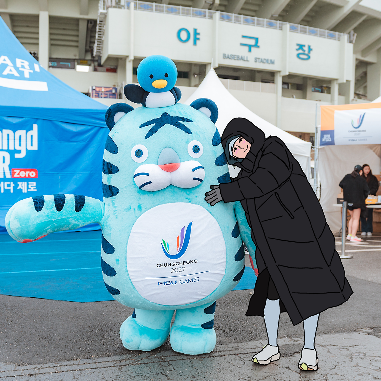 대회가 15분이 지났을 무렵 추적추적 내리던 빗줄기가 갑자기 굵어진다. 바람도 더욱더 거세게 불어댄다. 우두커니 서있는 내 몸에도 살짝 한기가 몸에 들어온다. 이 비바람 속 핑크팬더가 걱정이었는데 다행히 강했던 비바람은 곧 잦아들었다.