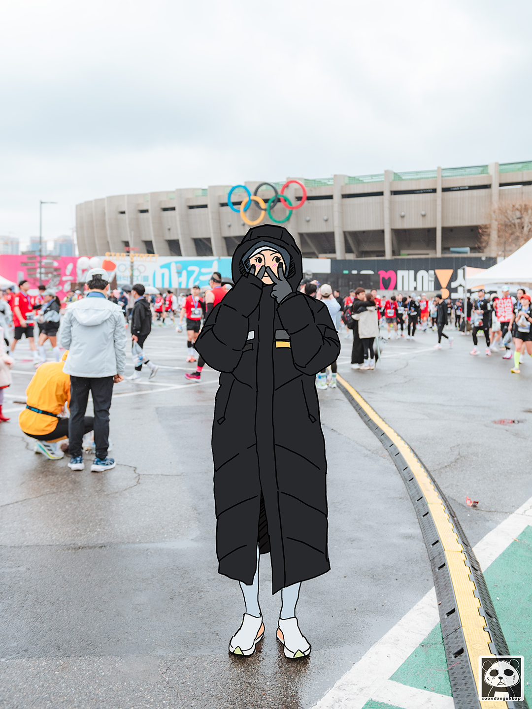 2025년 3월 16일 일요일 8시 날씨는 흐리고 비가 내리는 종합운동장에서 서울마라톤 10km 핑크팬더의 레이스가 시작되었다.