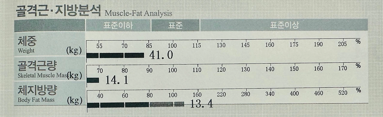 충분한 영양분이 들어오지 못해 몸에 에너지도 없고, 운동을 시작해도 탈이 나면 다시 도루묵이 되었다. 최근 인바디에서 측정한 골격근량은 14.1kg이었다. 표준 이하 중에서도 제일 낮은 칸에 머물렀다. 의사 선생님께서는 내 몸이 마치 팔다리가 가느다란 실로 이어진 종이 인형 같다고 하셨다.