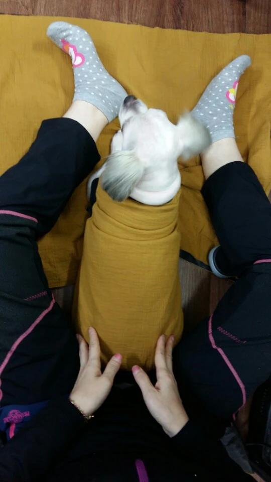 마당에서 살아야 해서 얇은 솜으로 옷을 만들어 입혔다. 후에...이 노란 옷이 엄청난 활약을 할거라곤 상상도 못한채....^^