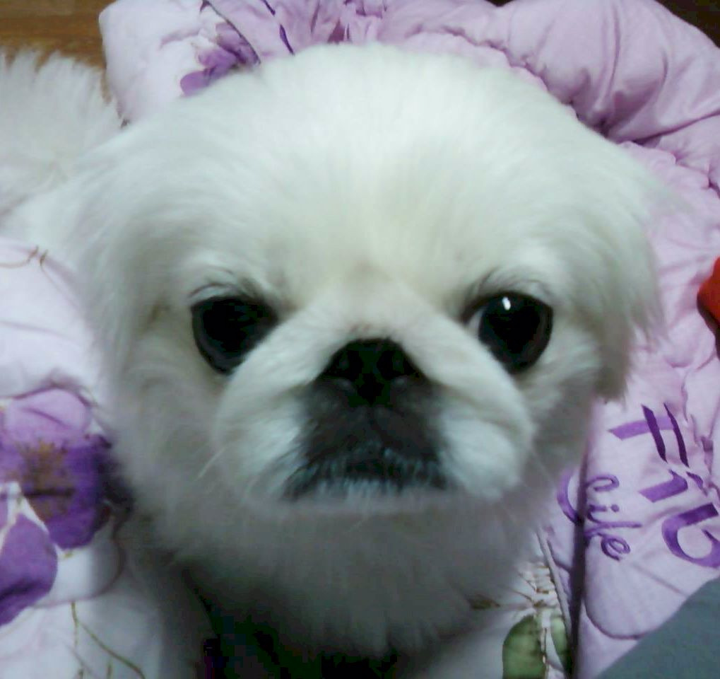 이 이쁜 페키니즈는 얼굴을 민자로 만들기 위해
