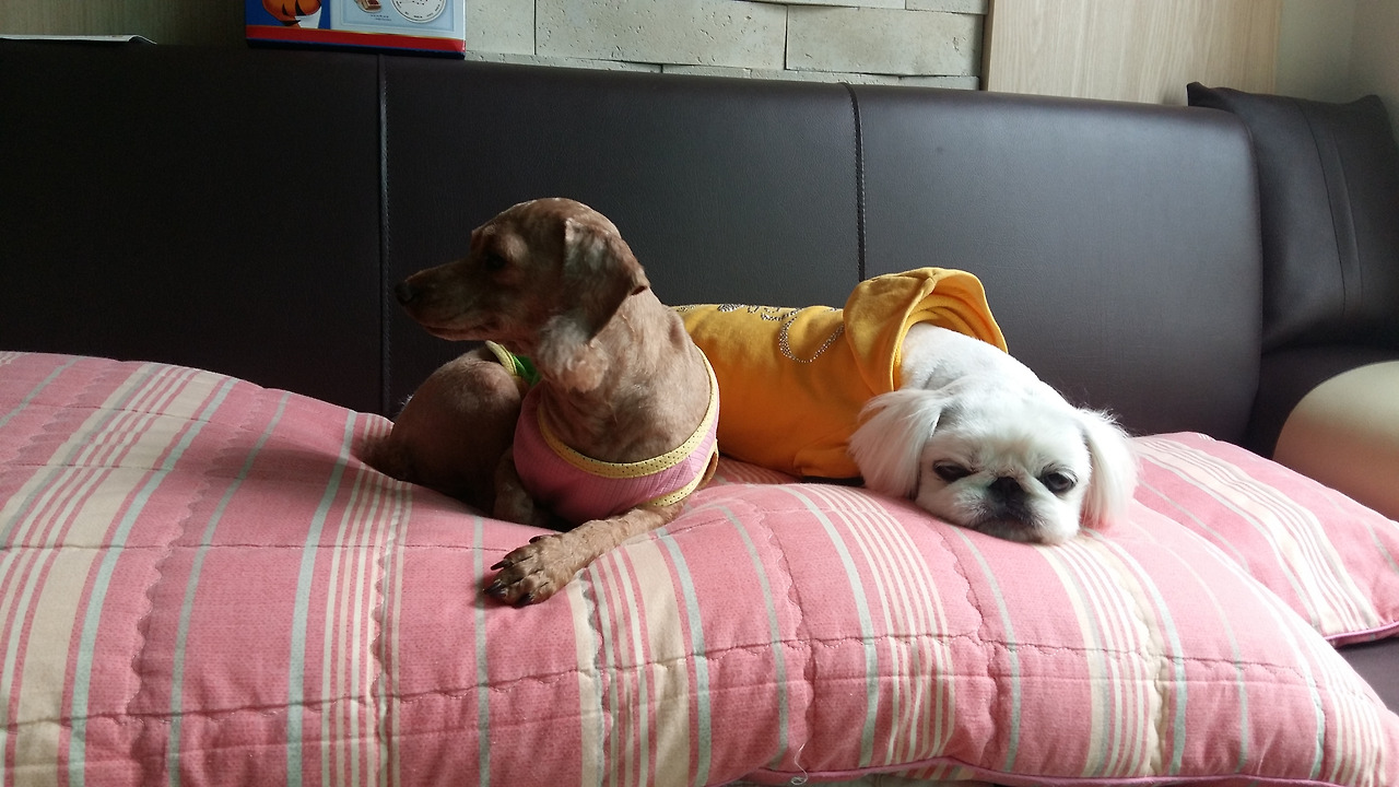 그래도 가족이라고 산책하다 낯선 녀석과 마주치면 둘이 합세하여 뎀벼 든다.