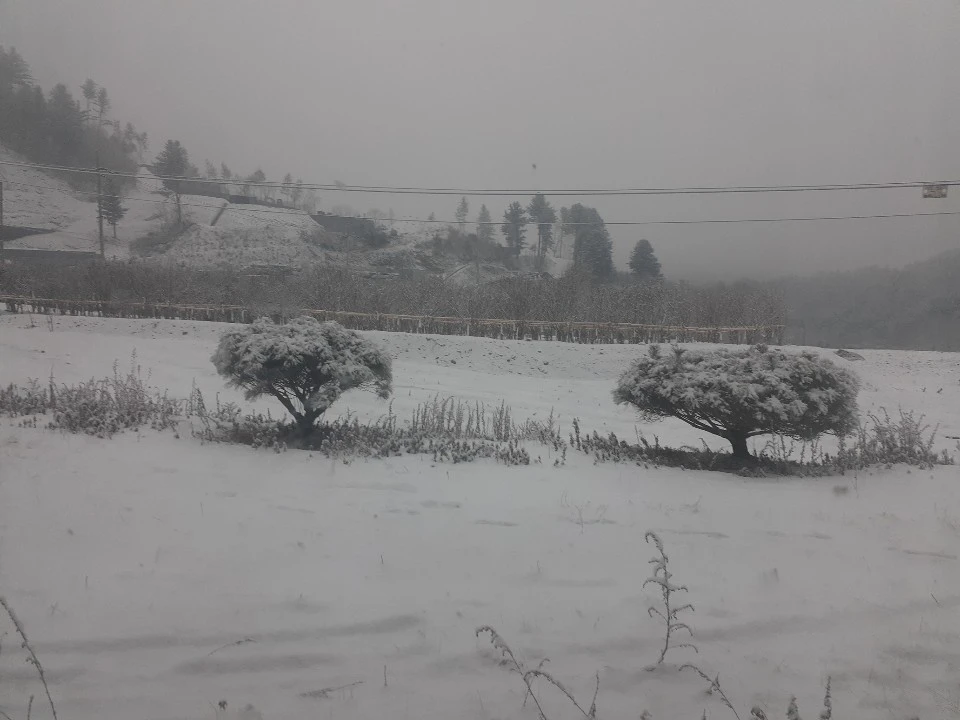 눈 내린 앞마당 풍경은 시간이 멈춘 듯하다