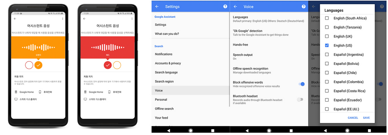 사용자는 AI 어시스턴트가 구사하는 언어를 수정할 수 있습니다. '남성', '여성'의 보이스 교체가 보편적인 기능입니다. 또한, 온라인 서비스에서 제공하는 목소리를 다운로드하여 교체할 수 있기도 합니다. 이는 목소리에서 느껴지는 앙증맞은, 장난스러운, 빠른 목소리 변경입니다. 그리고, 특정 인물의 목소리를 구현한 기능도 있습니다.
