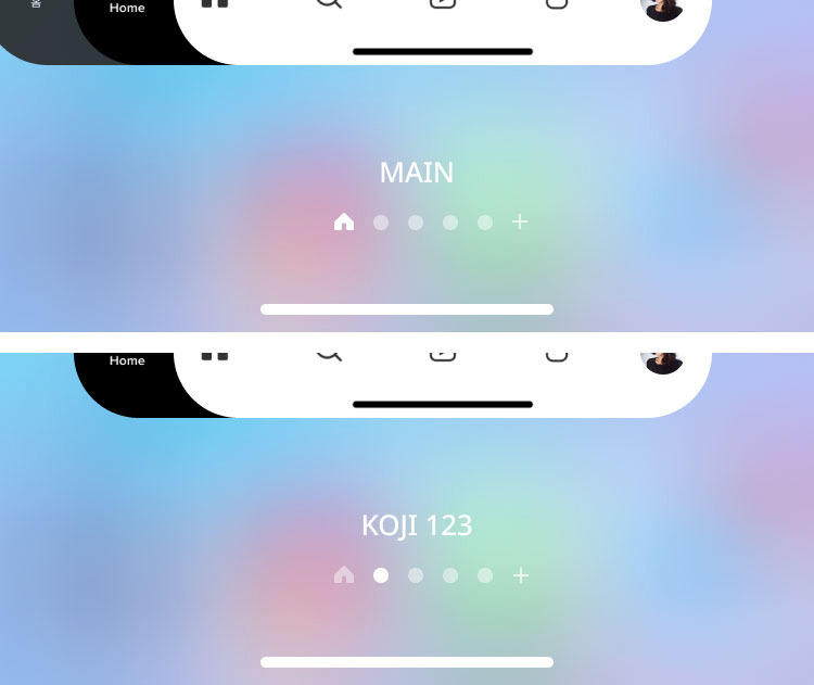 이를 위해서, 가상 디스플레이 별로 이동하는 인터랙션은 iOS에서 멀티 태스킹 화면으로 이동하였을 때, 하단에 페이지 내비게이션을 배치하 이동하도록 했습니다. 이러한 구조는 다음과 같습니다.