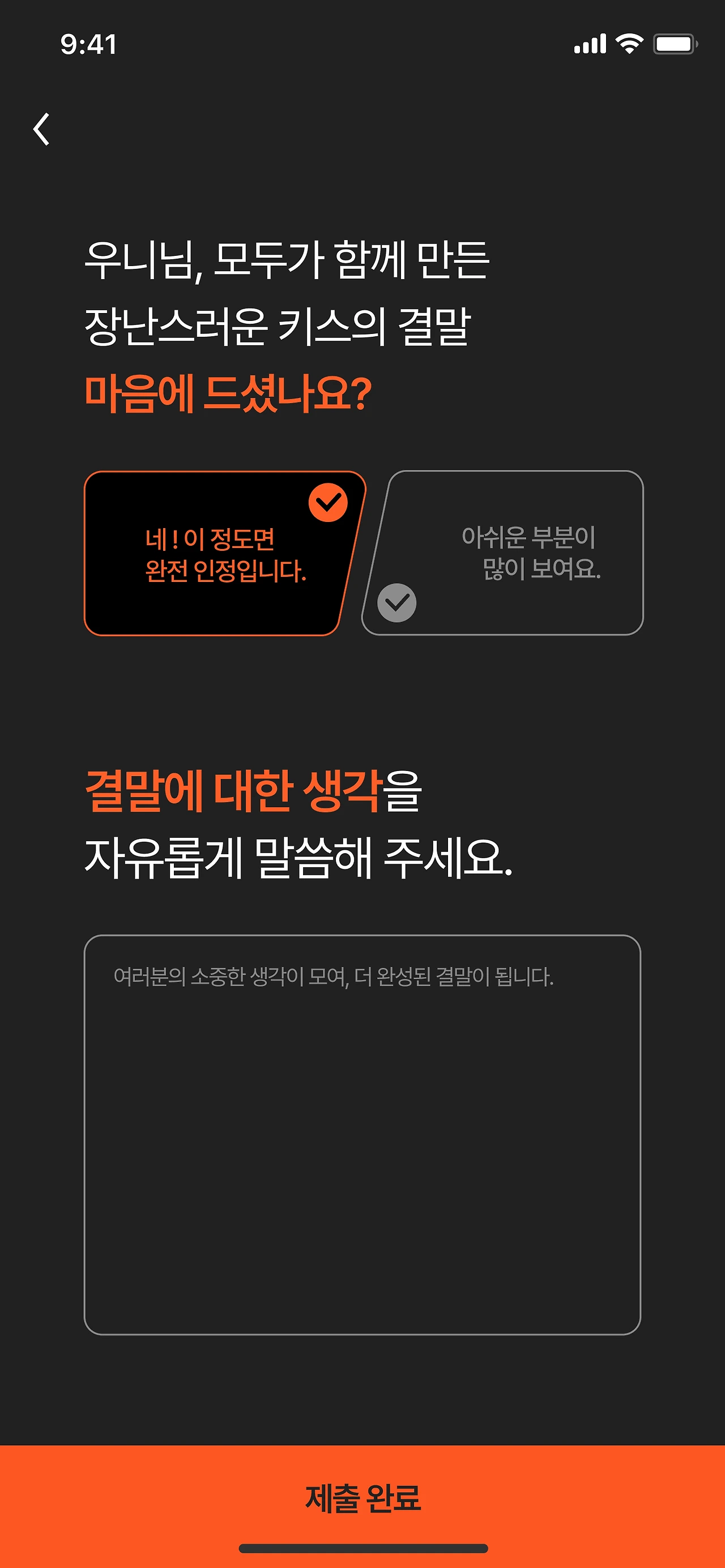 이러한 상상을 바탕으로, 미완성된 작품을 재연재해주는 생성형 AI 기반 펀딩 서비스로 구현해보고자 했다. 결론은 중간중간 팬들의 입장에서 선택에 따라 다르게 갈 수 있도록, 즉 팬들과 작품의 인터랙션이 적극 이뤄지도록 했다.
