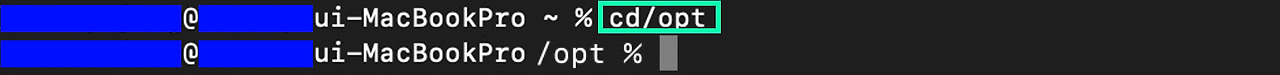 b. 새로 터미널을 열고, cd /opt 입력을 하면, 'username@usernameui-MacBook /opt % ' 상태로 프롬프트 창이 활성화될 것이다.