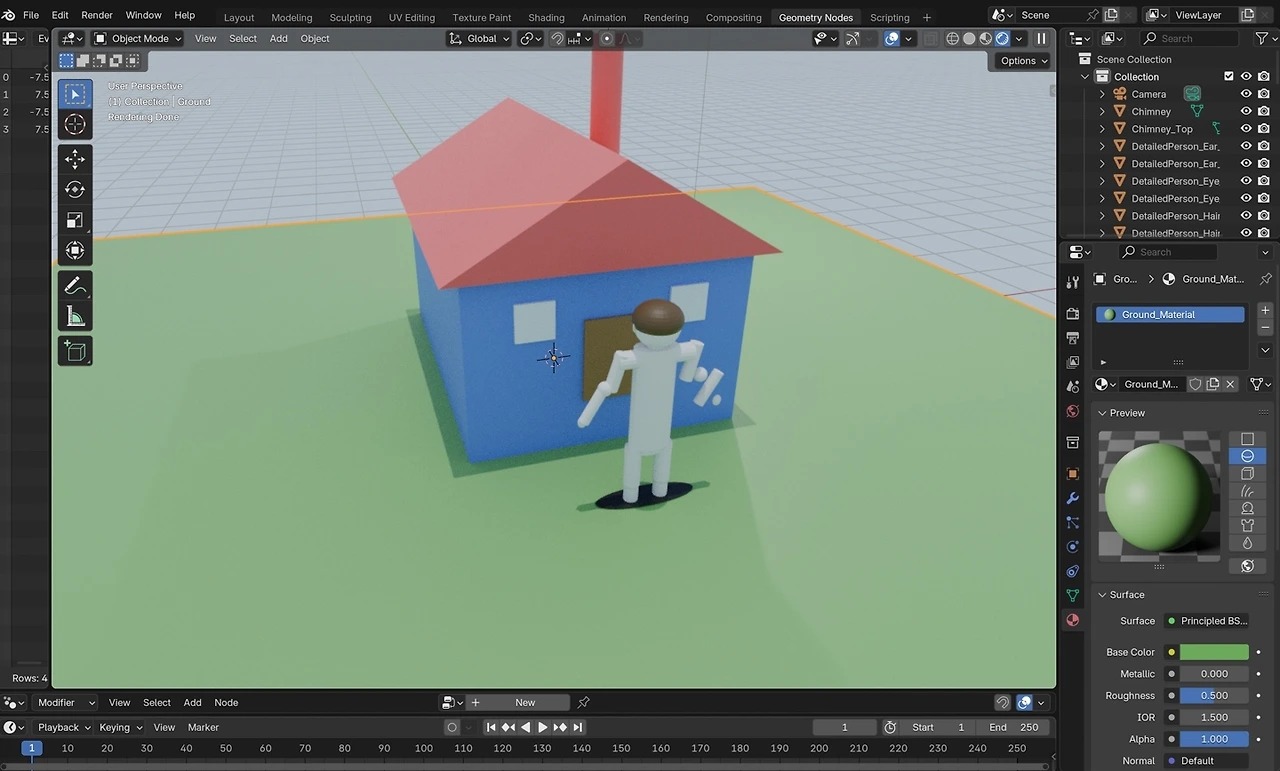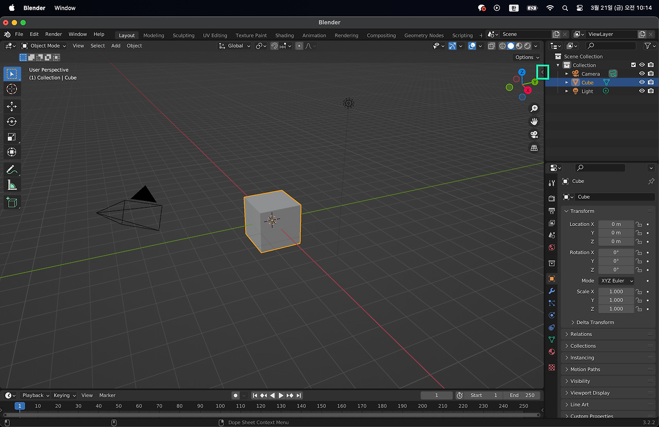 클로드에서 계속해서 AI가 무언가 텍스트를 입력하면서 로딩되는 상황이 보일 것이다. 그러면 블랜더로 넘어가 보자. 아마도 10~20초 만에 어떠한 형상이 3D로 구현되어 있을 것이다.