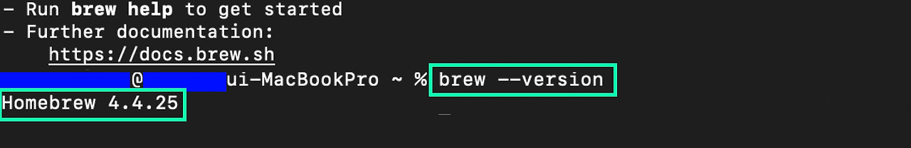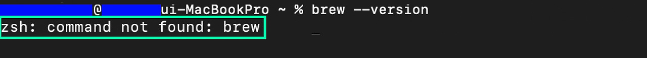 설치 후 첫 프롬프트로 brew --version을 입력하자. 설치가 성공적으로 잘 되었다면, 홈브루 버전이 뜰 것이다. 문제가 없다면 설치한 버전이 뜰 것이다. 그럼 (5) 단계로 넘어가자. 다만, 지금 컴퓨터가 맥북프로 M1 이면 'zsh: command not found : brew' 애러가 뜰 것이다. 그럼 (4-2) 단계로 넘어가자.