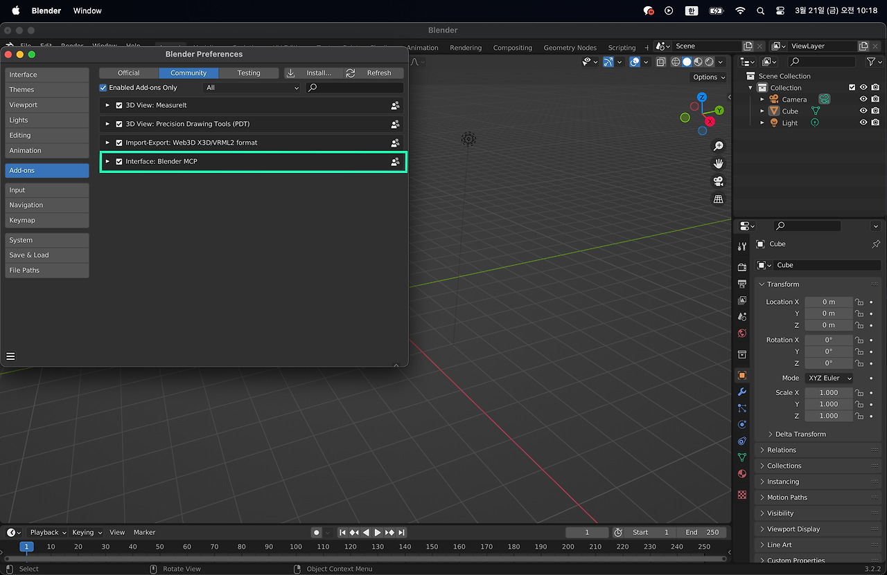 이제 블랜더에서 MCP 연결을 위한 준비를 하자. 단계가 복잡하지 하나씩 확인하고 넘어가자.