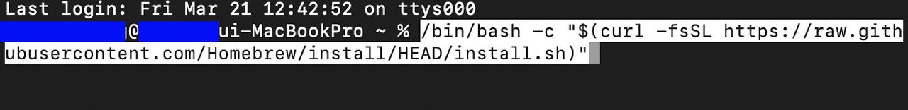텍스트가 인식되어 복사가 쉬워질 것이다. 입력하면, 홈브루가 재설치되고 될 것이다. 그러면 'username@usernameui-MacBook /opt % '이 다시 활성화되어 있다.