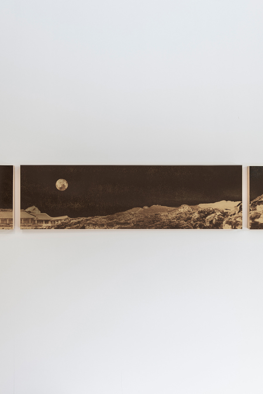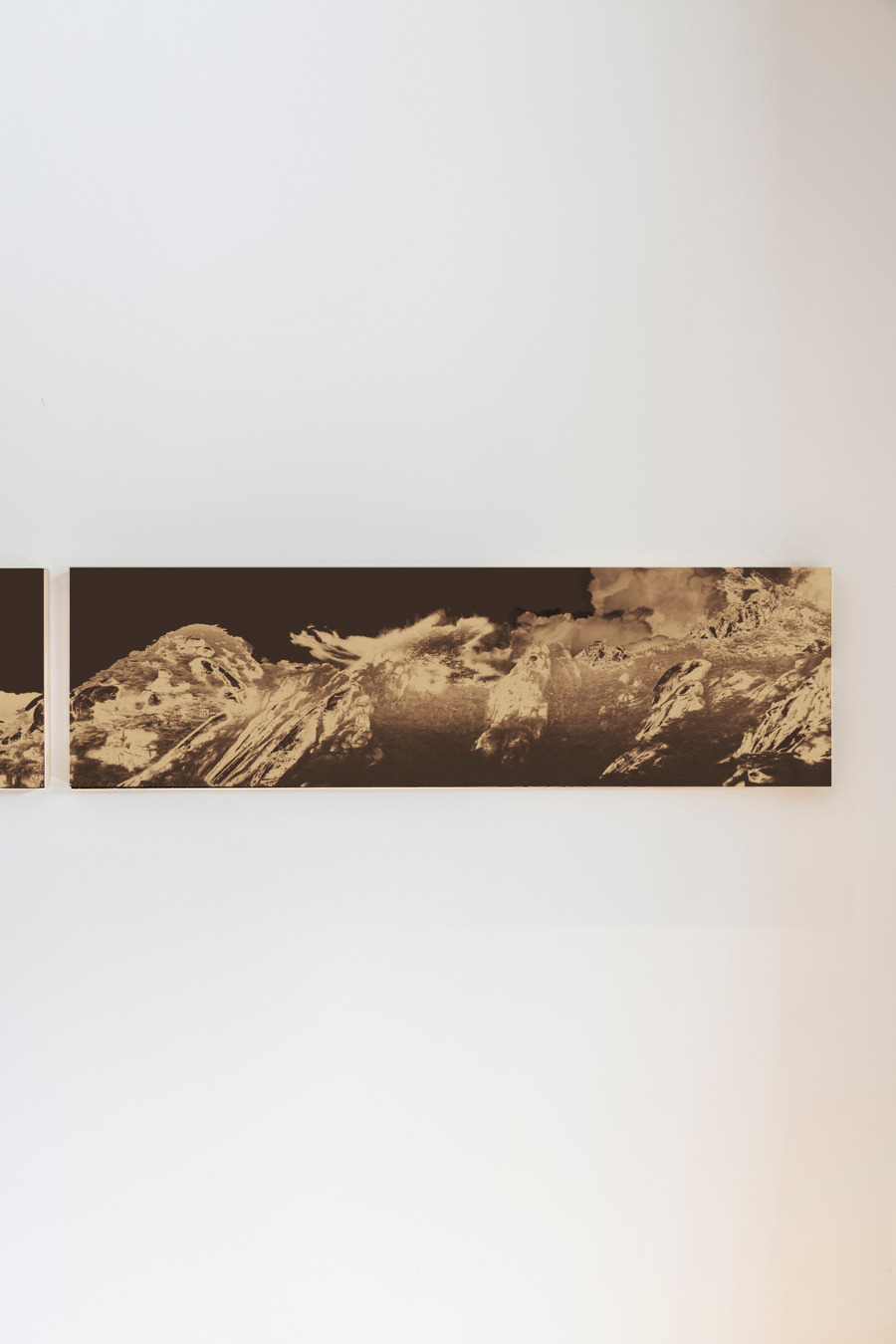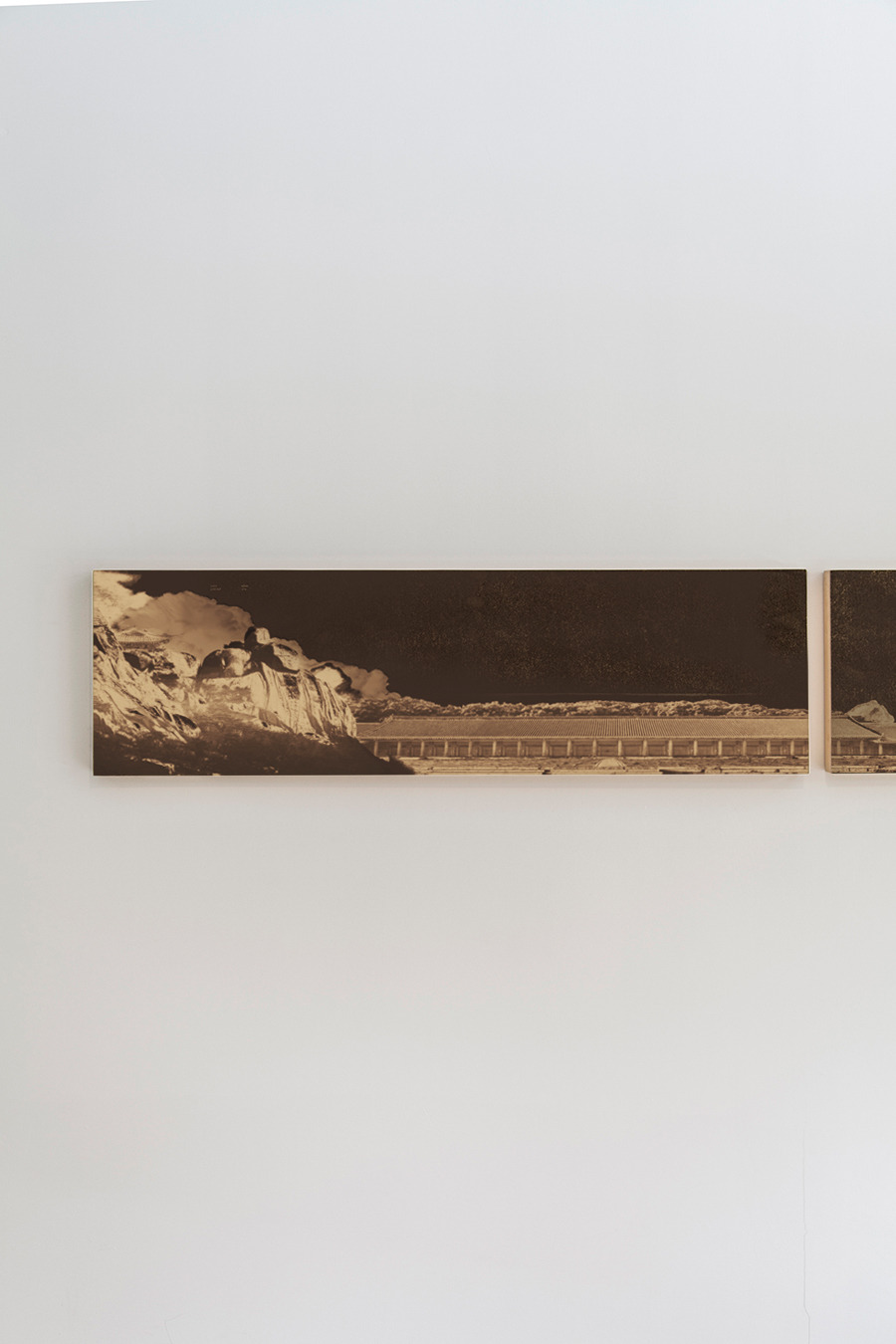동양화에서 볼 수 있는 비율을 채택하였다. 그리고 긴 영역에 여백의 공간을 부여했다. 아무 말이 없지만 많은 의미가 담긴 것처럼 보이게 말이다. 그리고 병풍에서 볼법한 산수화의 이미지를 구현하고자 노력했다. 컬러의 경우에는 묵직함을 보여주기 위해 웜 그레이(warm gray)와 골드 컬러를 기반으로 표현하였다.