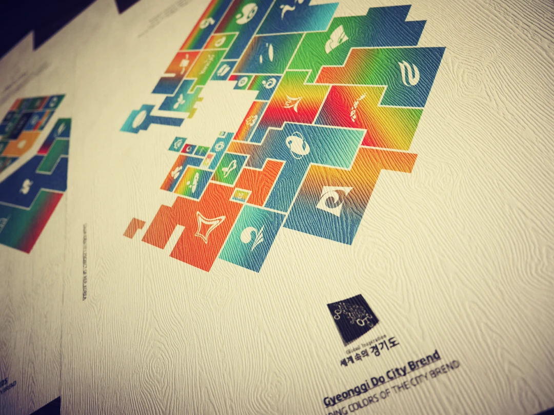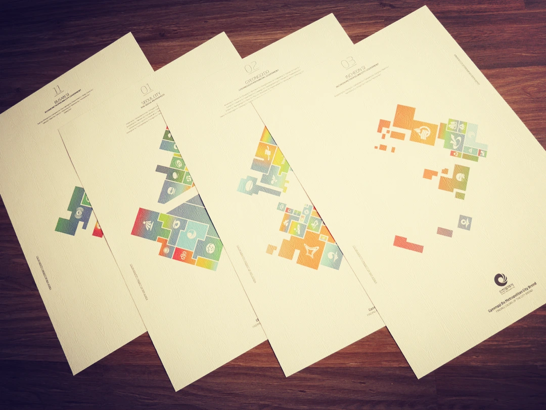 이렇게 표현된 인포 그래피를 통해 우리나라 각 도시의 통합되지 않고 영어를 남발하는 심벌마크와 의미 없이 사용하는 컬러의 상황을 보여주고자 했다. 그리고 도 별로 배치하여 경험을 분할하는 작업을 해보았다. 제작된 각각의 인포 그래피를 출력을 하여 마무리하였다.