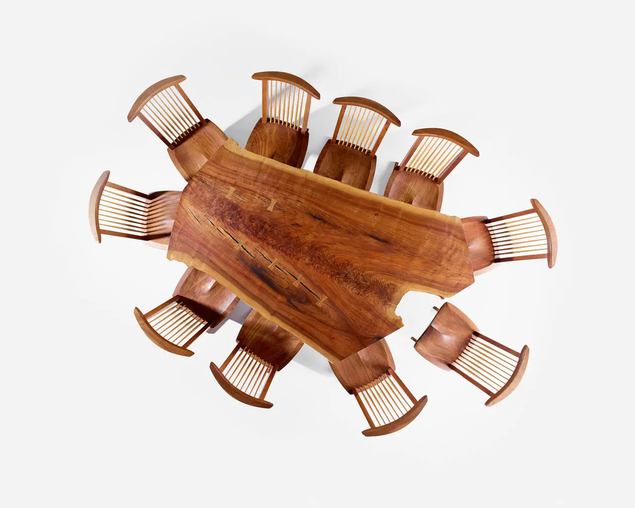 세계 2차 대전이 끝난 후, 조지 나카시마는 펜실베이니아에 정착하였다. 그리고 집 차고를 공방으로 사용하였는데, 이곳에서 나무를 기반으로 한 정갈하고 독자적인 가구 제작에 들어간다. 이렇게 시작한 가구는 AIA(미국건축협회)에서 금상을 수상하며 그의 가구 세계를 인정받게 된다. 이러한 영광에도 그는 끊임없는 탐구를 멈추지 않았다. 나무를 유기적으로 표현하며, 나무의 옹이와 마디, 그리고 나무 결이 아름답게 표현될 수 있는 나무를 고르는 방법에 대해서 끊임없이 탐구를 지속했다.
