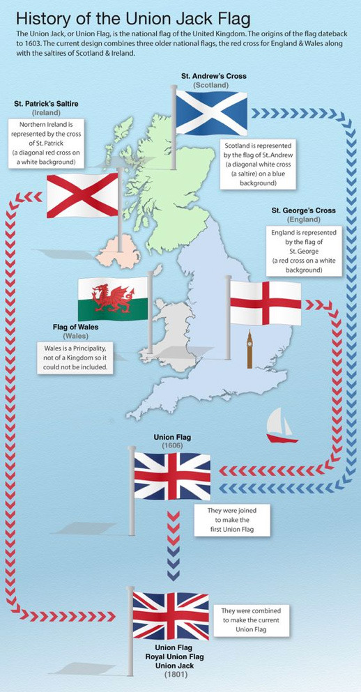 영국의 경우는 현재의 유니언잭 형태가 만들어지기 전까지 많은 과정을 거쳐왔다. 영국을 이루는 4개의 국가인 잉글랜드, 스코틀랜드, 웨일스, 북아일랜드의 국가적 아이덴티티가 통합되어 이루어진 형태다. 즉, 영국이 영문자 그대로 'United Kingdom'를 상징하는 심볼이다. 이러한 스토리를 아는 사람이 과연 많을까?