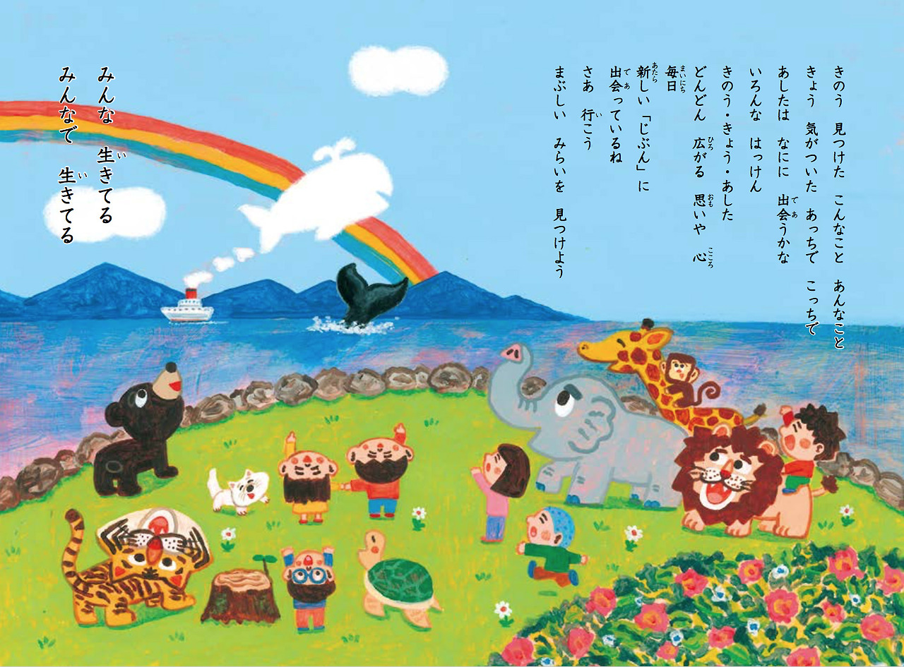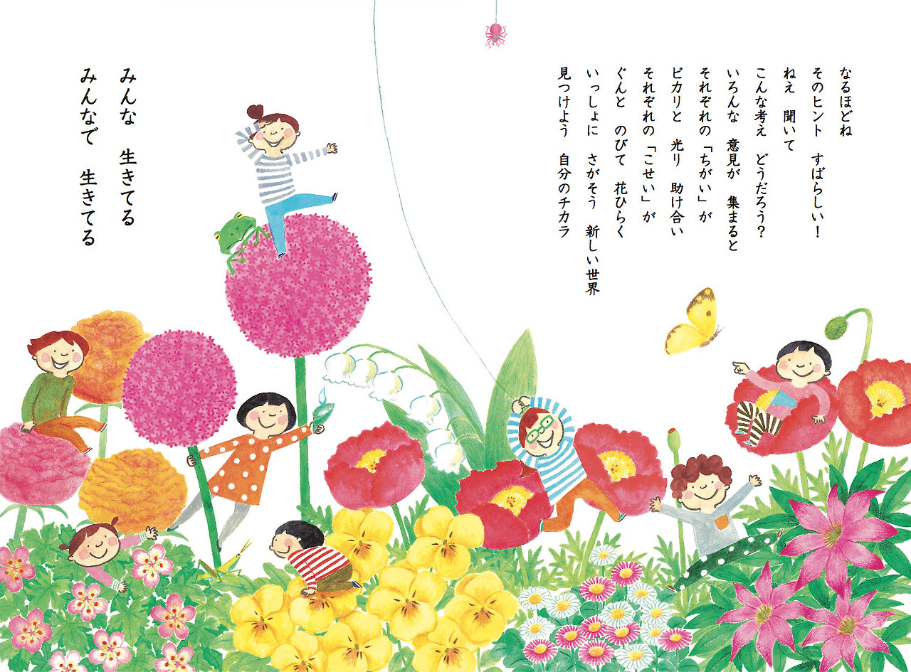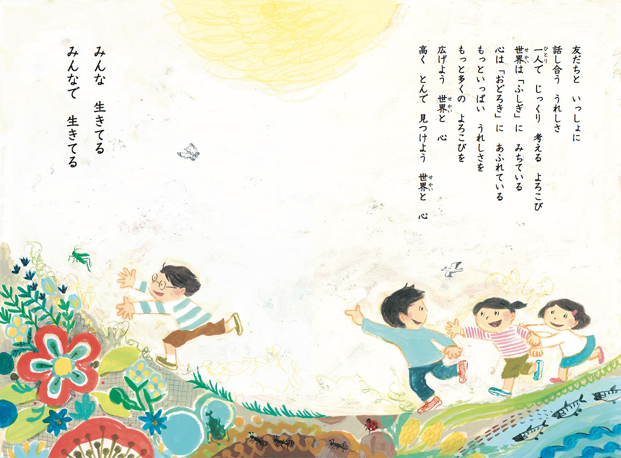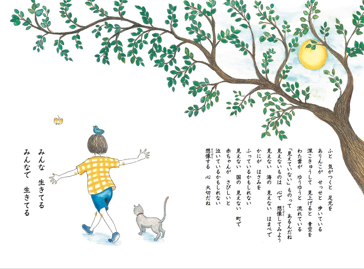 이 교과서의 각 학년 별 커버에서는 주인공이 성장하는 과정을 보여주고 있다. 그리고 아이들 눈높이에 맞게 일러스트를 그린 섬세함도 찾을 수 있다. 그리고 교과서 커버에 쓰이고 있는 '모두가 살아 있고 모두가 살아있다(みんな 生きてるみんなで 生きてる)' 문구는 마츠무라 도서가 교과서를 디자인하며 담고자 하는 마음을 가장 잘 표현한 문장이 아닐까 생각한다.