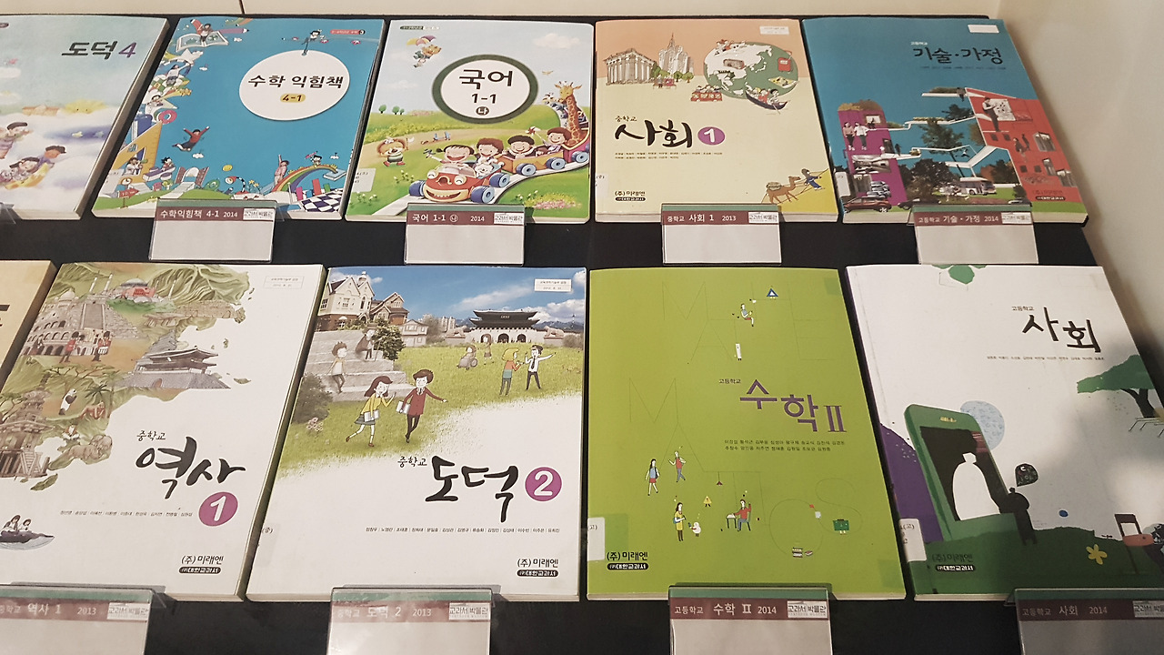 그렇다면 우리와 같은 문자를 쓰지만, 공산주의 문화에서 살아가고 있는 북한의 교과서는 어떨까? 철수와 영희와 닮은 캐릭터가 커버에 사용되는 점이 재미있었다.